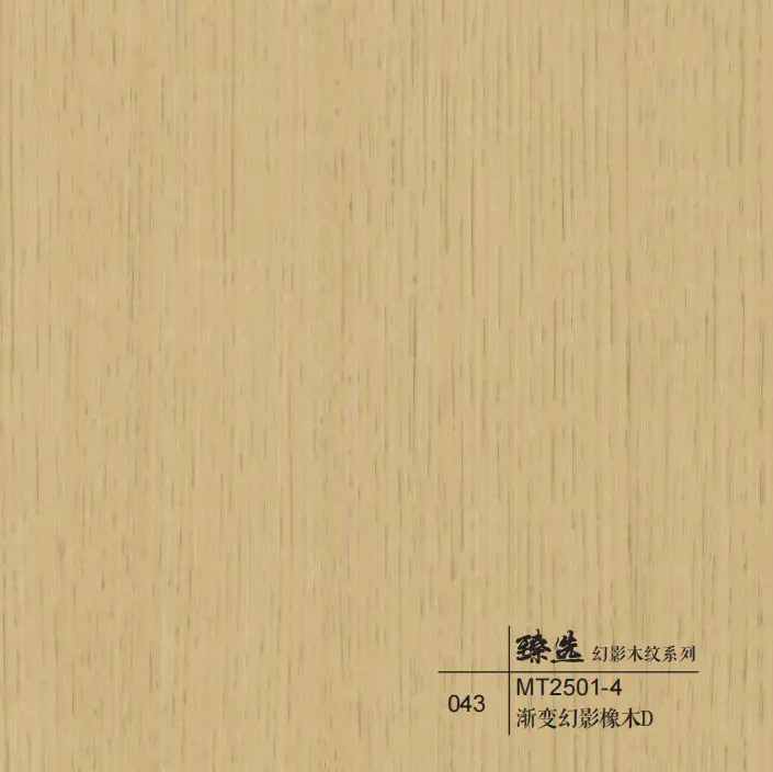 Tetep / Eco-Frefan / Non Diri-AdesifDibandhingake film adhesive, film hiasan dekorasi kayu sing awet nggunakake kekuwatan ikatan sing dhuwur banget. Liwat suhu lan tekanan sing dhuwur, mula integral karo materi dhasar, nyebabake tegas sing luar biasa lan ora ana perang sing isih ana.