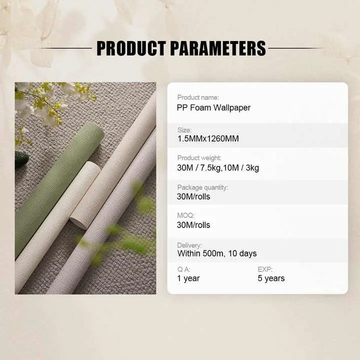 · Mupangat Functional Fungsi: Wallpaper iki nawakake macem-macem keuntungan, kalebu sifat anti statis, penebat panas, lan garansi 1 taun, nyedhiyakake pangguna sing dawa kanggo kabutuhan desain interior.